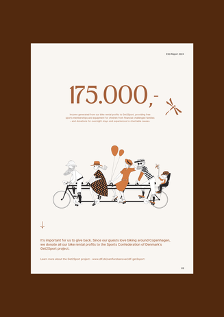 I worked closely with a small team from Guldsmeden Hotels - Kirsten Aggersborg, Sustainability and Communication Manager, and Astrid Kolle Østergaard, Sustainability & Marketing Strategist - to turn an ocean of raw data into a story that feels just like Guldsmeden itself: warm, unpretentious, and disarmingly honest. Along the way, we teamed up with illustrator Teis Caspersen, whose instantly recognisable Guldsmeden illustrations added a playful, familiar touch that anchored the report visually in the brand’s world.